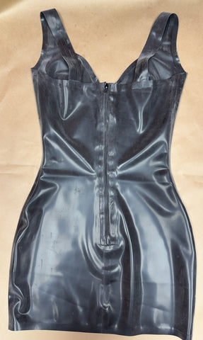 Latex dress with non-wired cups. Zip back